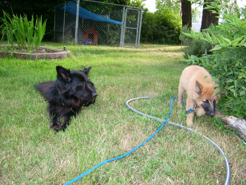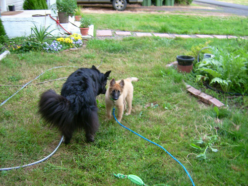 So in the yard and neighborhood, she was a bit reactive to sound, but there was a lot going on...cars, firecrackers (4th of July), the gun club down the road. WIll have to work on that, but maybe it's a product of the day and the new environment. She was otherwise engaged in some big decisions and strategizing...