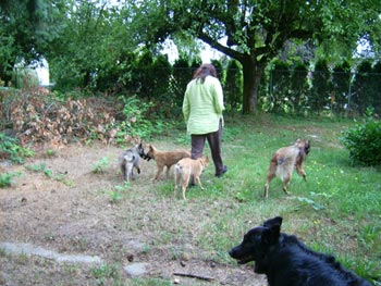 And it appeared some domestic dogs and human women were overseeing the peaceful coexistence of the rare pups...
